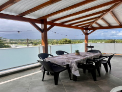 Venez découvrir ce bel appartement T4 de 96m2 meublé avec goût sur le secteur de Petit-Bourg proche de toutes commodités (grands axes, commerces, écoles, centre commercial de Colin, à 10mn de Jarry...). Il se situe au 1er et dernier étage d'une résidence de 4 logements, dans un environnement calme et se compose d'une grande terrasse ventilée de 30m2 avec une vue sur les montagne, un séjour lumineux, une cuisine séparée entièrement équipée, un dégagement donnant accès à trois chambres climatisées et équipées de rangement dont une suite parentale avec salle d'eau, WC et dressing privatif, une autre salle d'eau avec WC indépendant. Vous bénéficierez de deux emplacements de parking. BONUS : le logement est équipé d'une cuve ! Le loyer s'élève à 1500EUR et comprend l'eau, l'électricité et internet fibre. Contactez nous pour programmer votre visite ! Agence IMMO CONSEIL , deux agences a votre service en guadeloupe . Gosier/ Pointe a pitre 05 90 38 10 88 Saint francois 05 90 84 81 49 www.immobilier-en-guadeloupe.com