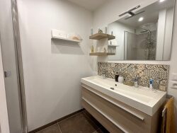 L'entrée dessert un beau séjour lumineux ouvrant sur un balcon, ainsi qu'une cuisine équipée, séparée par une élégante verrière. L'espace nuit comprend deux chambres, une salle de douche entièrement rénovée, ainsi que de nombreux rangements. Une cave complète ce bien.