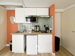 L'appartement se compose, au premier niveau, d'un séjour ouvert sur une cuisine, d'un WC indépendant ainsi que d'une salle d'eau. À l'étage, vous trouverez une chambre en duplex, offrant un espace nuit agréable et bien séparé du séjour, ainsi qu'un espace de rangement dressing.