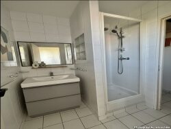 Au rez-de-chaussée: Une spacieuse entrée avec placards Un grand salon cathédrale très lumineux avec accès direct sur le balcon Une cuisine indépendante aménagée et équipée Deux chambres dont une avec salle d'eau Une salle d'eau Placards