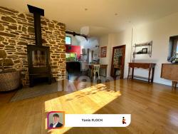 À Dinéault, aux portes de Châteaulin, laissez-vous séduire par le charme authentique de cette superbe longère du début du XXe siècle, entièrement rénovée avec soin. Nichée au calme d'un hameau, sur une parcelle arborée de plus de 3 000 m2, elle offre 136 m2 habitables dans un environnement verdoyant et paisible, tout en restant proche des commodités. Dès l'entrée, vous serez accueillis dans une vaste pièce de vie lumineuse, sublimée par une belle hauteur sous plafond et des poutres apparentes qui soulignent le caractère de la maison. Traversante et chaleureuse, elle s'articule autour du salon, baigné par la lumière d'un puits naturel, et d'une cuisine fonctionnelle disposant de larges plans de travail et d'un cellier indépendant. L'ensemble s'ouvre sur une grande terrasse plein sud joliment intgérée et arborée. Ce niveau accueille également une chambre parentale, avec la possibilité d'aménager une salle d'eau attenante, offrant ainsi une véritable vie de plain-pied. À l'étage, le palier doté d'un espace bureau joliment intégré, vous laissera accéder à la salle d'eau ainsi qu'aux deux chambres de l'étage, dont une bénéficie d'un espace dressing. À l'extérieur, la terrasse et le vaste jardin arboré constituent un véritable havre de paix, parfait pour se ressourcer. En complément, une grande dépendance offre de multiples possibilités : atelier, stockage ou extension, d'autant que plusieurs permis de construire ont déjà été accordés pour agrandir les espaces existants. Un bien rare sur le secteur, qui allie cachet de l'ancien, rénovation de qualité et potentiel d'évolution, dans un cadre privilégié où règnent tranquillité et nature. Yanis Floch se fera un plaisir de vous présenter ce bien dans les meilleures conditions. - Annonce rédigée et publiée par un Agent Mandataire -