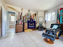 Pour l'espace intérieur la villa est composée d'un étage sur rez-de-chaussée: Au rez-de-chaussée possibilité de créer un T3 demandant petits travaux de rafraichissement, composé d'un séjour, d'un espace pouvant être aménagé en cuisine, de deux chambres, d'une salle d'eau et d'un WC indépendant. À l'étage un T2 avec un séjour , d'une cuisine indépendante, d'une chambre et d'une salle de bains avec WC.