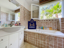 Votre agence 1+1 IMMO vous propose une jolie maison élevée d'un étage au coeur d'une palmeraie unique, idéalement située dans une station balnéaire au coeur de Saint-Aygulf, à 2 minutes à pieds du centre du village où vous trouverez tous les commerces, et les premières criques à pieds.