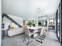 Un art de vivre raffiné Dès l'entrée, le ton est donné : lumière, espace et modernité. Le rez-de-chaussée dévoile une majestueuse pièce de vie de plus de 53 m², sublimée par de larges baies vitrées et prolongée par une terrasse bois exposée plein sud, véritable prolongement naturel vers la piscine chauffée. La suite parentale de 23,5 m², avec dressing et salle d'eau privative, incarne le confort et l'intimité recherchés. Pour plus de praticité vous disposez également d'une buanderie indépendante.