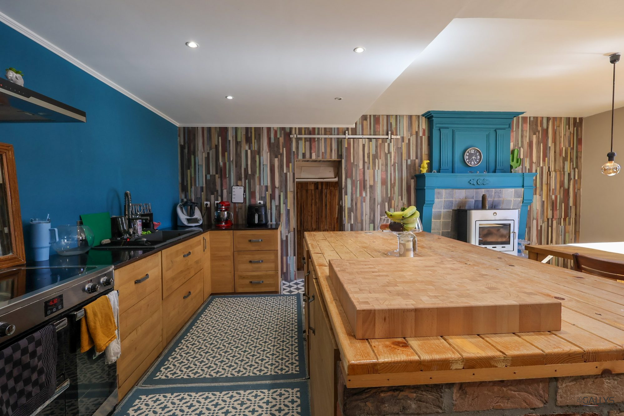 Les pièces de réception sont à la hauteur : vaste salon, salle à manger conviviale, cuisine avec imposante cheminée, deux bureaux. À l'étage, quatre grandes chambres et une salle d'eau offrent confort et intimité à toute la famille. Le second niveau abrite un atelier à la remarquable hauteur sous plafond, parfait pour un espace artistique ou une salle de jeux.