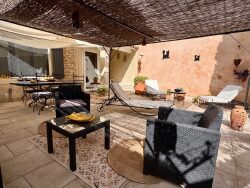 Située au calme, en bout d'impasse, charmante maison de village de 140 m² habitables séduit par la qualité de sa rénovation et le soin apporté à chaque détail.Répartie sur trois niveaux, elle allie le charme de l'ancien avec ses pierres apparentes et son ambiance provençale au confort d'une rénovation contemporaine.Elle se compose d'une grande pièce de vie lumineuse avec cuisine ouverte, de deux belles chambres, d'une salle de bain avec douche et baignoire, de deux WC, ainsi que d'une buanderie.À l'extérieur, une belle cour aménagée permet de profiter pleinement des beaux jours, dans un environnement calme et préservé. Un grand garage complète l'ensemble.Proche des commodités, cette propriété rare offre un cadre de vie authentique et élégant.