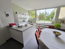 Le salon donne sur un grand espace séjour cuisine en véranda de 44m² qui donne sur la terrasse et son beau jardin, cette pièce propose une cuisine ouverte et aménagée.