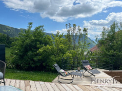 QUARTIER LE CHURUT, Magnifique maison neuve d'environ 100 m2 bénéficiant d'une vue exceptionnelle sur les montagnes sans aucune gêne. Elle comprend une entrée aménagée, un wc, une cuisine neuve équipée ouverte sur une salle à manger et un salon baigné de lumière ; A l'étage, 2 chambres en duplex dont 1 ouverte sur une belle terrasse, une salle d'eau / wc. A l'extérieur, le terrain est agrémenté d'une immense terrasse en IP et d'un garage / cellier, 3 places de parking. Possibilité de piscine, Chauffage au sol sur les 2 niveaux. Les prestations sont haut de gamme. Produit très RARE.