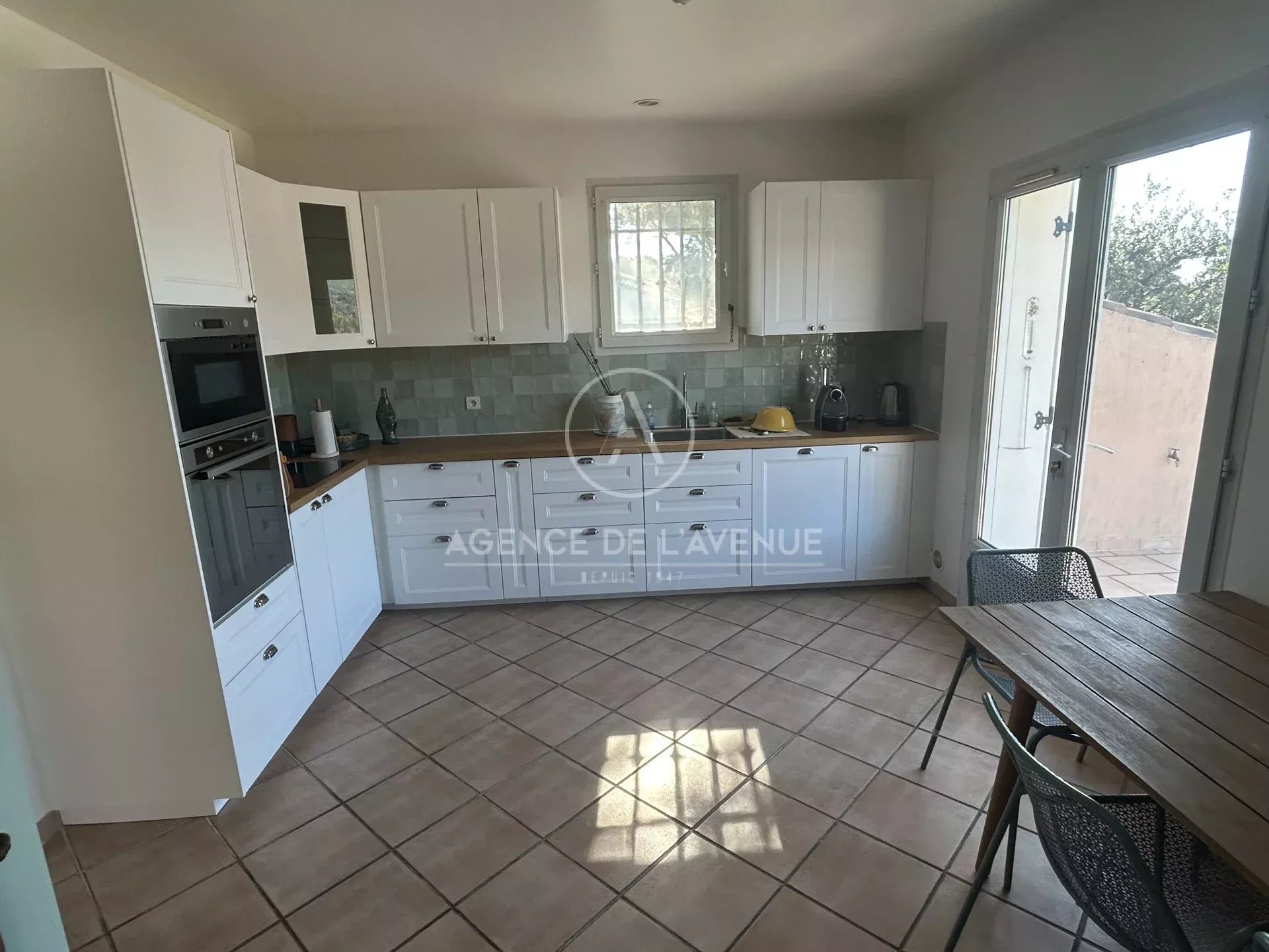 Dès l'entrée, la maison s'ouvre sur un salon baigné de lumière, sublimé par une belle hauteur sous plafond et de larges ouvertures rares pour ce type de bien créant une harmonie naturelle entre intérieur et extérieur. La salle à manger, accompagnée de sa cuisine provençale en carreaux de Salernes, offre une vue apaisante sur le jardin. Dans le prolongement, une véranda de 19,5 m² invite à la détente.