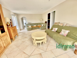 HAVRE DE PAIX AVEC VUE PANORAMIQUE ET ÉQUIPEMENT DE LOISIRS Découvrez cette propriété unique de 101 m2 nichée au coeur d'un environnement naturel exceptionnel, sans vis-à-vis. Idéalement située en pleine campagne, cette maison offre un cadre de vie privilégié, baigné de tranquillité et de beauté. Érigée sur un vaste terrain de 2535 m2, entièrement clos et sécurisé par un portail électrique, cette résidence est une véritable invitation à la détente et aux loisirs. Profitez d'une piscine, d'un terrain de tennis pour vos matchs amicaux et d'un terrain de boules éclairé pour prolonger vos soirées. L'intérieur de la maison offre une grande pièce de vie très lumineuse. Grâce à ses grandes baies vitrées, l'intérieur et l'extérieur se confondent, vous donnant l'impression de vivre en permanence au grand air, même depuis votre salon. La maison est vendue meublée, vous permettant de vous installer sans attendre. L'extérieur est une extension de votre espace de vie avec une magnifique terrasse couverte de 40 m2 abritant une cuisine extérieure entièrement équipée, incluant un authentique four à pain. Un espace idéal pour recevoir et partager des moments inoubliables. Les bricoleurs apprécieront l'atelier dédié. La propriété dispose également d'une annexe indépendante de 25 m2 aménagée en studio, parfaite pour accueillir vos proches ou pour un usage locatif. Des travaux de rafraîchissement ont été réalisés récemment, notamment la peinture intérieure. La toiture de la résidence principale a été partiellement rénovée. Venez visiter ce lieu où la nature est reine et où chaque jour est une immersion dans un cadre idyllique avec une vue imprenable.
