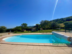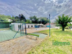 HAVRE DE PAIX AVEC VUE PANORAMIQUE ET ÉQUIPEMENT DE LOISIRS Découvrez cette propriété unique de 101 m2 nichée au coeur d'un environnement naturel exceptionnel, sans vis-à-vis. Idéalement située en pleine campagne, cette maison offre un cadre de vie privilégié, baigné de tranquillité et de beauté. Érigée sur un vaste terrain de 2535 m2, entièrement clos et sécurisé par un portail électrique, cette résidence est une véritable invitation à la détente et aux loisirs. Profitez d'une piscine, d'un terrain de tennis pour vos matchs amicaux et d'un terrain de boules éclairé pour prolonger vos soirées. L'intérieur de la maison offre une grande pièce de vie très lumineuse. Grâce à ses grandes baies vitrées, l'intérieur et l'extérieur se confondent, vous donnant l'impression de vivre en permanence au grand air, même depuis votre salon. La maison est vendue meublée, vous permettant de vous installer sans attendre. L'extérieur est une extension de votre espace de vie avec une magnifique terrasse couverte de 40 m2 abritant une cuisine extérieure entièrement équipée, incluant un authentique four à pain. Un espace idéal pour recevoir et partager des moments inoubliables. Les bricoleurs apprécieront l'atelier dédié. La propriété dispose également d'une annexe indépendante de 25 m2 aménagée en studio, parfaite pour accueillir vos proches ou pour un usage locatif. Des travaux de rafraîchissement ont été réalisés récemment, notamment la peinture intérieure. La toiture de la résidence principale a été partiellement rénovée. Venez visiter ce lieu où la nature est reine et où chaque jour est une immersion dans un cadre idyllique avec une vue imprenable.