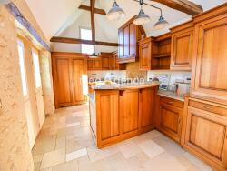 Idéal pour une grande famille, pour un projet de gîte ou bien de chambres d'hôtes, le logis principal se compose d'une grande pièce de vie lumineuse, d'une grande mezzanine avec fenêtres à arc brisé, architecture typique du Moyen-Age. Le chauffage au sol est idéal pour un confort optimum.