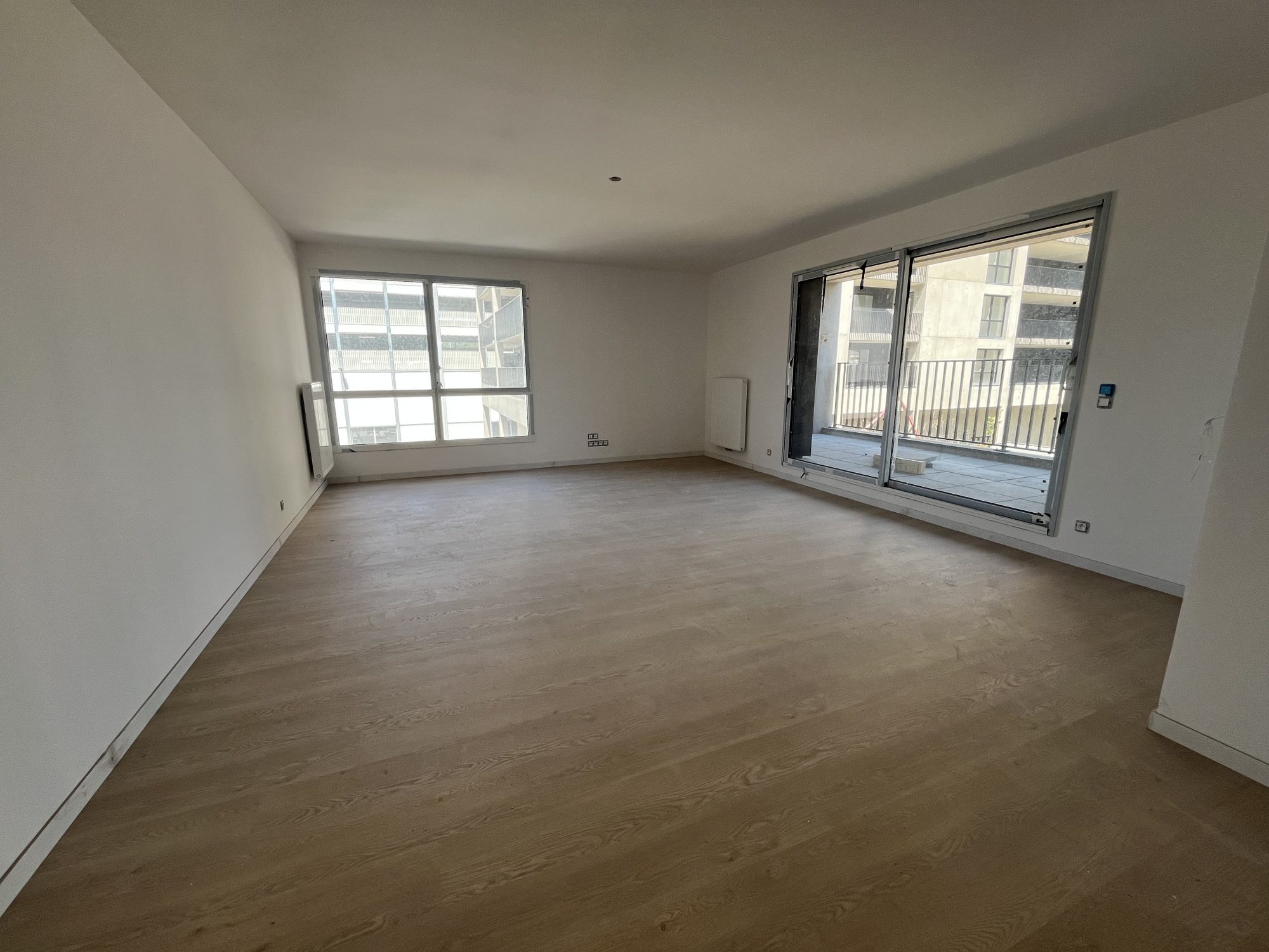 L'entrée dessert une très grande pièce de vie de 50 m² avec coin cuisine, véritable coeur de l'appartement, baignée de lumière grâce à ses larges ouvertures. Cet espace de vie généreux s'ouvre sur une grande terrasse de 24 m², accessible directement depuis l'ensemble des pièces de l'appartement, offrant une continuité intérieur / extérieur remarquable. L'espace nuit se compose de deux grandes chambres, situées de part et d'autre du séjour, garantissant calme et intimité pour chaque occupant. Salle de bains et WC complètent l'ensemble pour un confort optimal au quotidien.
