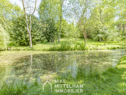 Cette propriété ancienne de 215 m2 habitables (possibilité d'aménager les combles de 240 m2 au sol) s'élève sur un parc exceptionnel de plus de 7 500 m2, offrant un cadre préservé avec rivière, étang, piscine chauffée et absence totale de vis-à-vis.