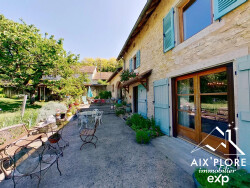 BUGEY (AIN) PROPRIETE DE 248 m². TERRAIN 3 340 m² 6 CHAMBRES PISCINE ATELIER INDÉPENDANT Vous rêvez d'espace, de nature et d'authenticité ? Située dans un hameau de Rix à 2 km de Lhuis (Ain), cette grande maison familiale de caractère vous offre une qualité de vie rare, entre calme bucolique et richesse culturelle. À seulement 10 minutes de Morestel, cité dynamique aux multiples expositions artistiques, à 30 minutes de Crémieu, village médiéval aux portes de Lyon et de l'aéroport Saint-Exupéry, vous bénéficiez d'un cadre de vie idyllique sans renoncer à la connexion. Caractéristiques principales : -Surface terrain : 3 340 m² arboré (vergers, potagers, espace détente) -Surface habitable : 248 m² sur trois niveaux -Nombre de chambres : 6 spacieuses chambres -Annexes : Cave, grange/atelier de 54 m², piscine, balcon -Toiture en tuiles écailles, réparée il y a environ 8 ans et récemment démoussée. -Double vitrage avec moustiquaires dans toutes les pièces du bas côté jardin. Disposition intérieure : Rez-de-chaussée : Séjour : 21 m²/Salon : 21 m²/Cuisine : 14 m²/Salle à manger / cuisine secondaire : 15 m²/Petit salon avec chauffage au sol : 17 m²/Pièce attenante polyvalente avec chauffage au sol : 20 m²/WC : 3 m². 4 chambres disposent chacune de leur propre salle de bain. Niveau 1: 2 chambres /Chambre 1 : 18,5 m²/Chambre 2 : 20,5 m². Niveau 2 : 2 chambres /Chambre 3 : 13,8 m²/Chambre 4 : 13.2 m²/Salle de bain : 11,8 m²/Salle d'eau attenante/Dressing : 5 m²/Dégagements : 9 m² + 3,5 m². Sous les combles : Petite chambre /Salon-chambre : 29 m² /Toilettes : 5,5 m²/Balcon. Chauffage et énergie : Chaudière biofioul à condensation installée en décembre 2024 (conforme à la réglementation). Compatible fioul traditionnel et biofioul. Il existe du fioul traditionnel nouvelle génération qui n'a pas de souffre. Pour le système de chauffage, il y a deux thermostats : un pour le chauffage au sol et un pour les radiateurs dans le reste de la maison. Ballon d'eau chaude électrique de 300 L, indépendant de la chaudière. Point de chauffe au bois labellisé Flamme Verte. Eau chaude (électrique). Annexes : 3 caves en tout dont une cave de 26 m² avec système de drainage naturel. Atelier indépendant : 54 m² avec compteur Linky, point d'eau et tuyauterie de chauffage existante (potentiel studio indépendant). Extérieurs et nature : Un véritable havre de paix pour les amoureux de nature et d'autonomie. -2 poiriers, 2 pommiers, 1 cerisier, 2 pêchers, 1 noyer, 1 figuier, 1 kaki, framboisier, cassis etc.... -2 potagers parfaitement entretenus. Piscine en dur (liner scellé), installée en 1980 12.5x7. Vie quotidienne et environnement : Vous serez séduits par la richesse naturelle du Bugey, son calme, ses forêts à explorer, ses sentiers de randonnée ou de vélo (ViaRhôna à proximité), et sa qualité de vie incomparable. Attention : ce bien s'adresse à des acquéreurs en quête d'authenticité. Ici, pas de commerces à chaque coin de rue, mais une vraie respiration, un retour à l'essentiel. À noter : la maison n'est pas adaptée aux personnes à mobilité réduite (présence d'escaliers). Informations complémentaires : Isolation en Siporex au rez-de-chaussée (excellent confort thermique et phonique). Plafonds abaissés pour optimiser la chaleur. Pourquoi investir ici ? Parce que vous cherchez plus qu'une maison. Vous cherchez un lieu de vie, un projet de vie, un coin de paradis où cultiver vos légumes, vos fruits, vos passions. La maison a auparavant fonctionné en tant que chambre...