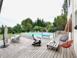Votre agence LA ROCHELLE FRENCH PROPERTIES spécialisée dans la vente de biens de prestige, vous propose cette propriété prestige idéalement placée aux portes de LA ROCHELLE sur la commune de SAINTE SOULLE. A proximité des commerces et du centre-bourg, cette demeure d'une superficie de 260 m2 environ en parfait état offre de magnifiques volumes et des prestations haut de gamme. Elle se compose au rez de chaussée d'une entrée, une belle pièce de vie de plus de 100 m2 donnant face à la piscine, une cuisine ouverte sur la salle à manger, une une buanderie, wc séparé. L'étage quant à lui est articulé autour d'un couloir central desservant la suite parentale (chambre, dressing, salle de bains), les 4 grandes chambres dont une avec salle d'eau, une salle de bains et le wc séparé. A cet ensemble s'ajoutent une parcelle arborée de plus de 2400 m2, une piscine chauffée, une cuisine d'été, deux dépendances de 140 et 150 m2 chacune. Produit rare sur le secteur. VISITE VIRTUELLE DISPONIBLE SUR DEMANDE. Coût annuel d'énergie du logement entre 2990EUR et 4090EUR par an - Les informations sur les risques auxquels ce bien est exposé sont disponibles sur le site Géorisques : www. georisques. gouv. fr Les informations sur les risques auxquels ce bien est exposé sont disponibles sur le site Géorisques : www.georisques.gouv.fr