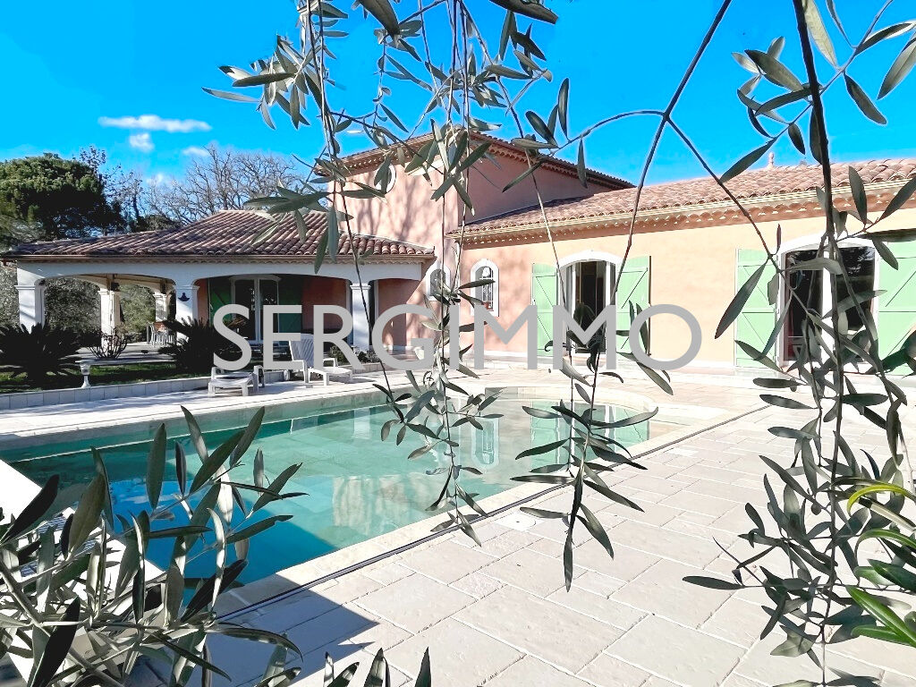 SERGIMMO 83440, à vendre à Montauroux Magnifique propriété dominante d'environ 190 m2 bénéficiant d'une vue panoramique imprenable sur la vallée. La villa se compose d'un spacieux séjour lumineux ouvrant sur terrasse couverte, avec baie à galandage, cuisine équipée, Rdc : 2 suites avec 1 salle d'eau et 1 salle de bain + douche à l'italienne privatives et dressing, bureau. A l'étage: 1 suite avec salle d'eau et salon privatif avec une cheminée. Terrain de 5800 m2 environ paysagé et complanté avec de belles restanques en pierres. Vous y trouverez toutes les essences méditerranéennes, de magnifiques palmiers ainsi que de nombreux oliviers centenaires.. Vous serez séduits par le charme et ses ambiances. Bel espace piscine chauffée avec pool house. Garage, cave a vin Coup de Coeur ! Belles prestations. Proche des commodités. Les honoraires sont charge vendeurs. Contact : 04.94.39.10.99. Prix : 1 090 000 euros Référence 1951