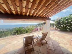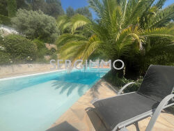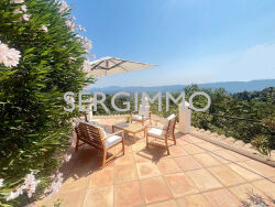 SERGIMMO 83440, à vendre à Montauroux Magnifique propriété dominante d'environ 190 m2 bénéficiant d'une vue panoramique imprenable sur la vallée. La villa se compose d'un spacieux séjour lumineux ouvrant sur terrasse couverte, avec baie à galandage, cuisine équipée, Rdc : 2 suites avec 1 salle d'eau et 1 salle de bain + douche à l'italienne privatives et dressing, bureau. A l'étage: 1 suite avec salle d'eau et salon privatif avec une cheminée. Terrain de 5800 m2 environ paysagé et complanté avec de belles restanques en pierres. Vous y trouverez toutes les essences méditerranéennes, de magnifiques palmiers ainsi que de nombreux oliviers centenaires.. Vous serez séduits par le charme et ses ambiances. Bel espace piscine chauffée avec pool house. Garage, cave a vin Coup de Coeur ! Belles prestations. Proche des commodités. Les honoraires sont charge vendeurs. Contact : 04.94.39.10.99. Prix : 1 090 000 euros Référence 1951