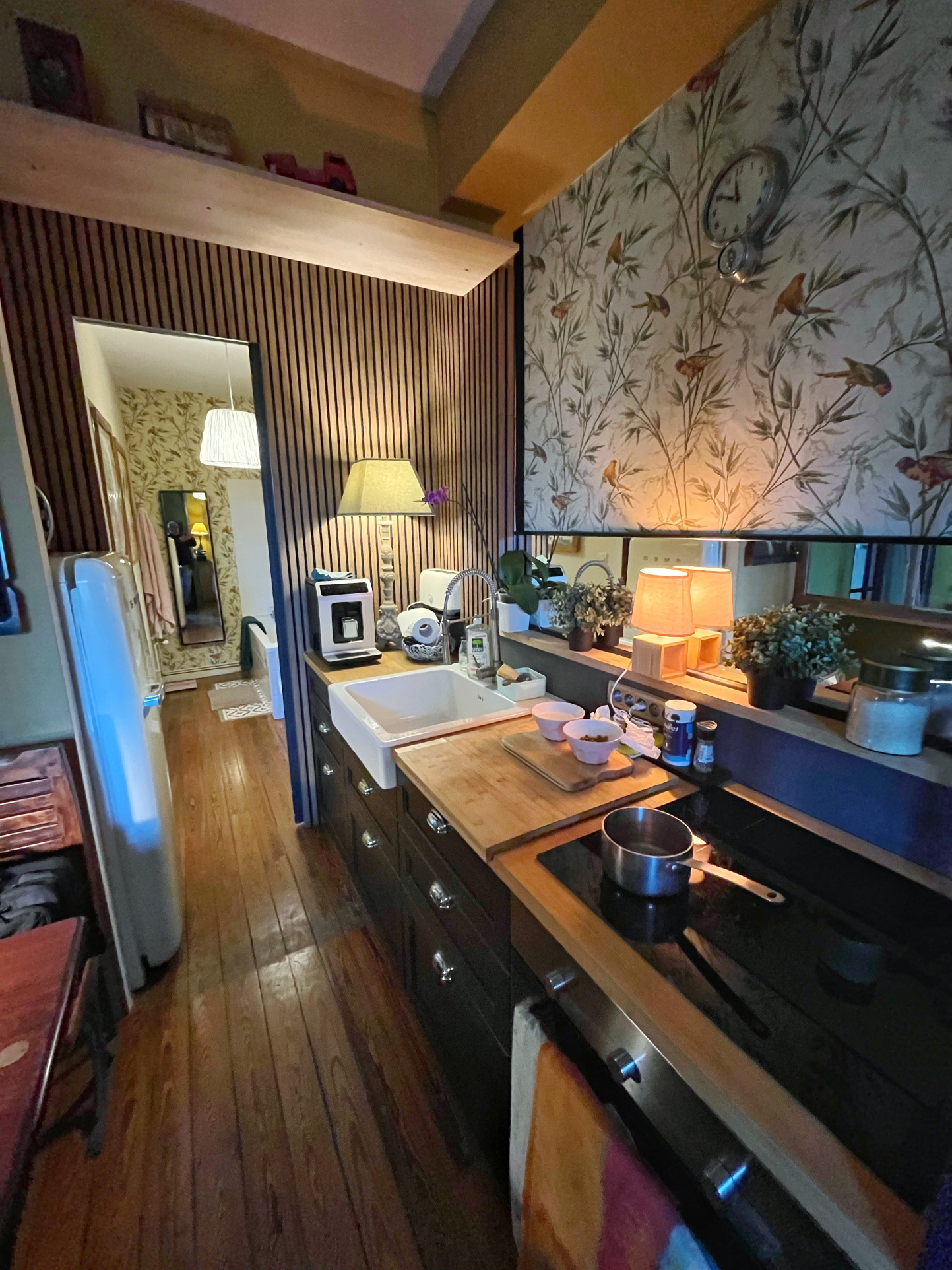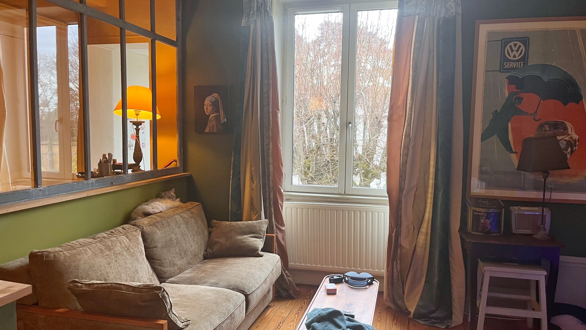 Un bel espace séjour, baigné de lumière grâce à ses larges ouvertures, s'ouvre sur une cuisine américaine entièrement aménagée et équipée. Un lieu de vie chaleureux et convivial, pensé pour le quotidien comme pour recevoir.