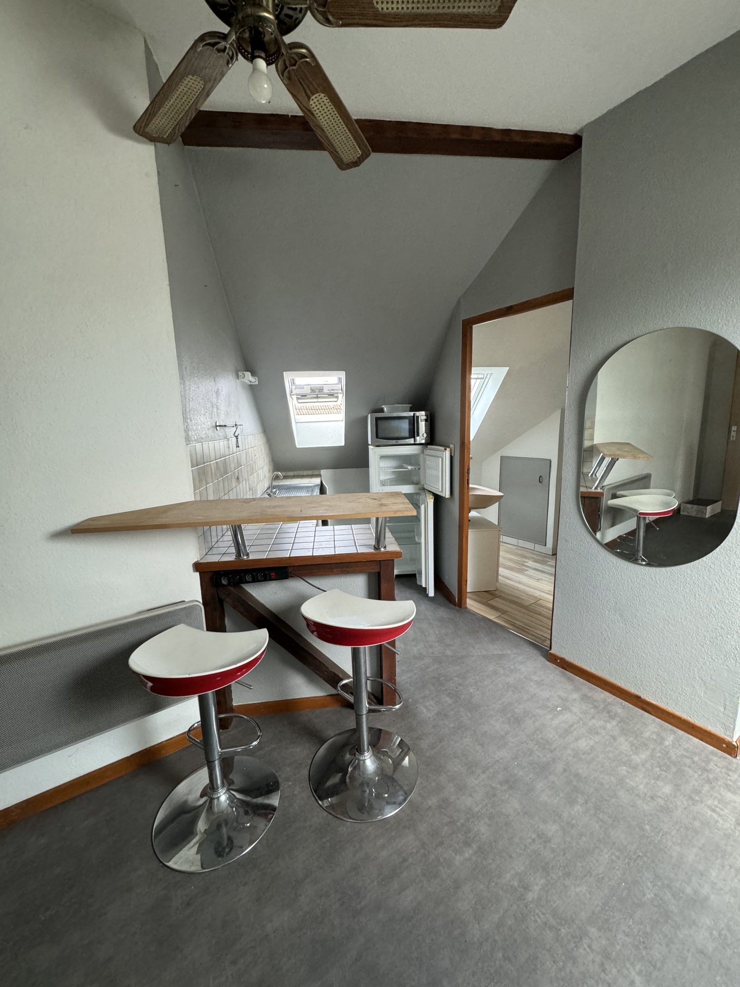 - Une pièce principale lumineuse avec kitchenette ainsi qu'un emplacement pour une machine à laver,