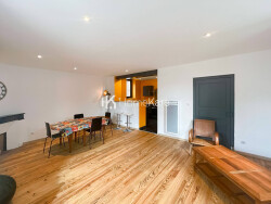 Appartement T2 de 56m² meublé en rez-de-jardin. Cuisine aménagée et équipée ouverte sur la pièce de vie, vaste chambre, salle d'eau, wc séparé. Jardin clôturé de 80m avec un emplacement de stationnement.