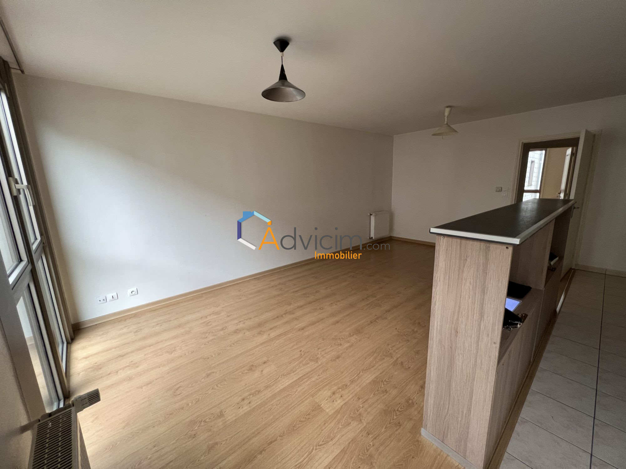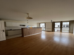 L'appartement se compose de : Un vaste séjour lumineux avec poutres apparentes, offrant une belle hauteur sous plafond, et une vue dégagée sur la ville. Une cuisine ouverte entièrement équipée, parfaite pour les repas en famille ou entre amis. Deux chambres spacieuses, idéales pour un couple ou une colocation. Une salle d'eau moderne, ainsi qu'un WC séparé. La localisation est idéale, à proximité immédiate des commerces, transports en commun et toutes les commodités du centre-ville.