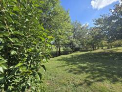 Le terrain est arboré et offre une belle vue sur la campagne.