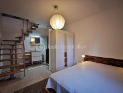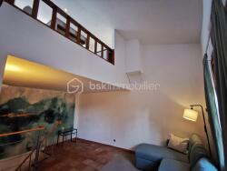 Celui ci est composé au 1 er niveau d' une jolie chambre bien équipée avec des placards, salle d' eau avec douche italienne et WC.Au niveau supérieur, grand salon avec placard. Et dernier niveau Cuisine aménagée et équipée avec un second WC donnant sur une magnifique terrasse tropézienne bien ensoleillée.