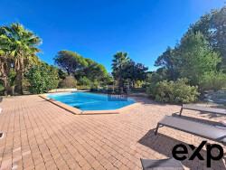 A l'étage un dégagement dessert deux chambres donnant sur un petit solarium ainsi qu'une salle d'eau avec WC. Côté extérieur vous pourrez profiter des terrasses (une couverte) bordant la jolie piscine sans aucun vis à vis.