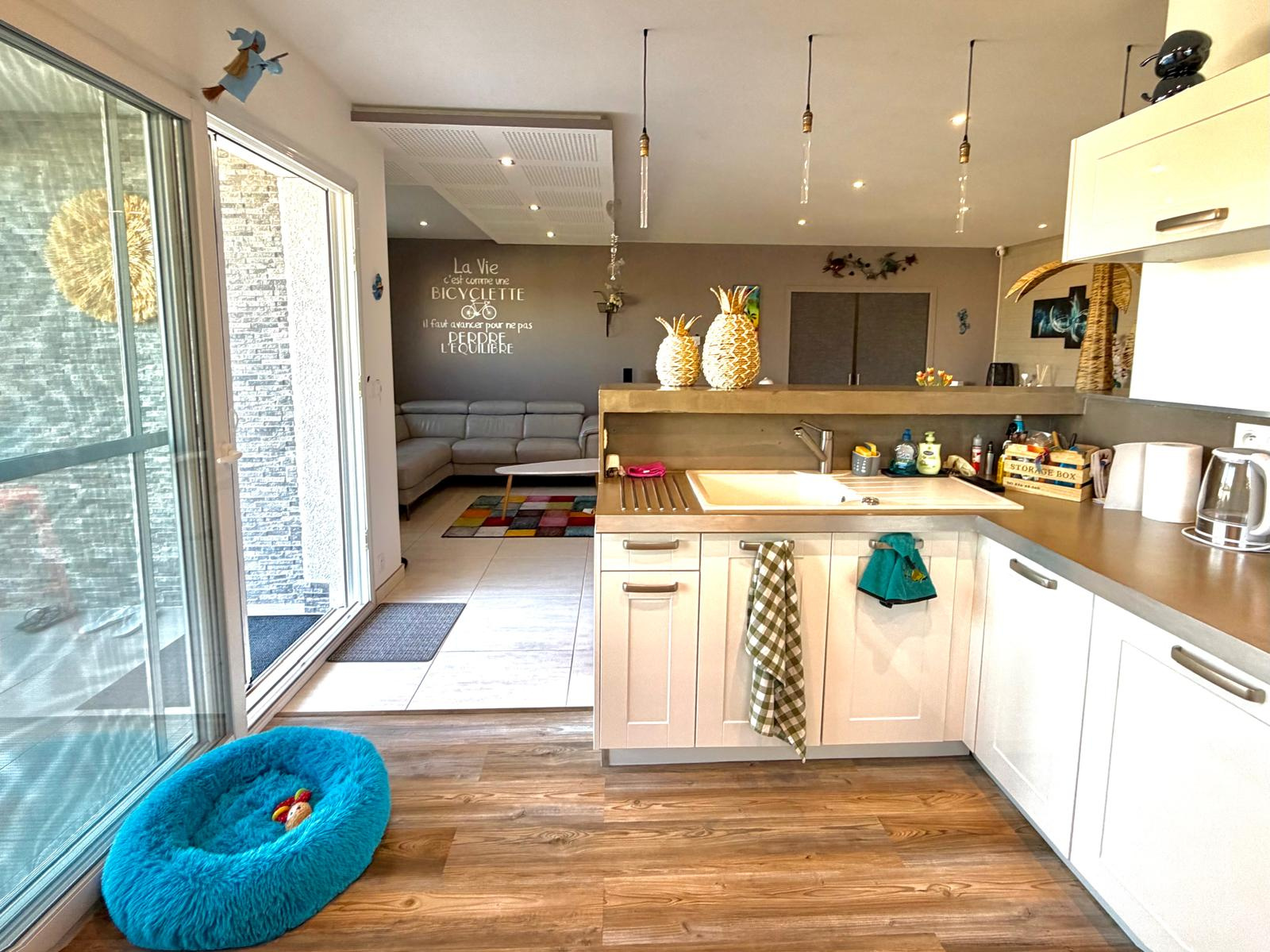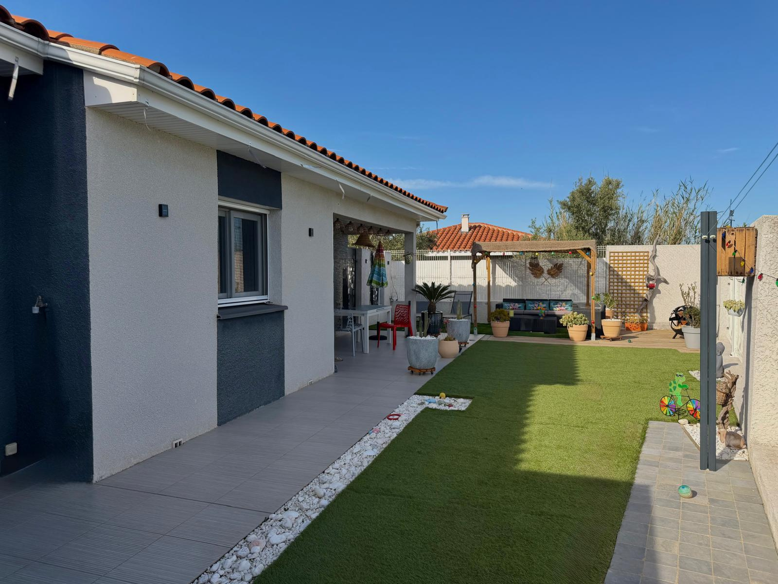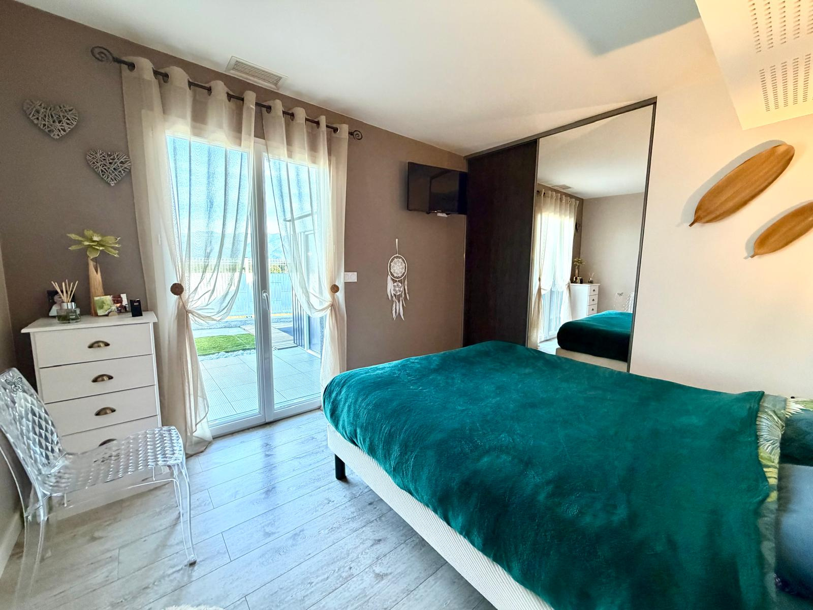 Villa composée de 4 pièces dont 3 chambres avec dressing, une grande et lumineuse pièce de vie ouverte sur la cuisine aménagée et équipée. Une salle d'eau moderne avec douche à l'italienne, un wc indépendant. Vous trouverez aussi un petit coin bureau et une buanderie .