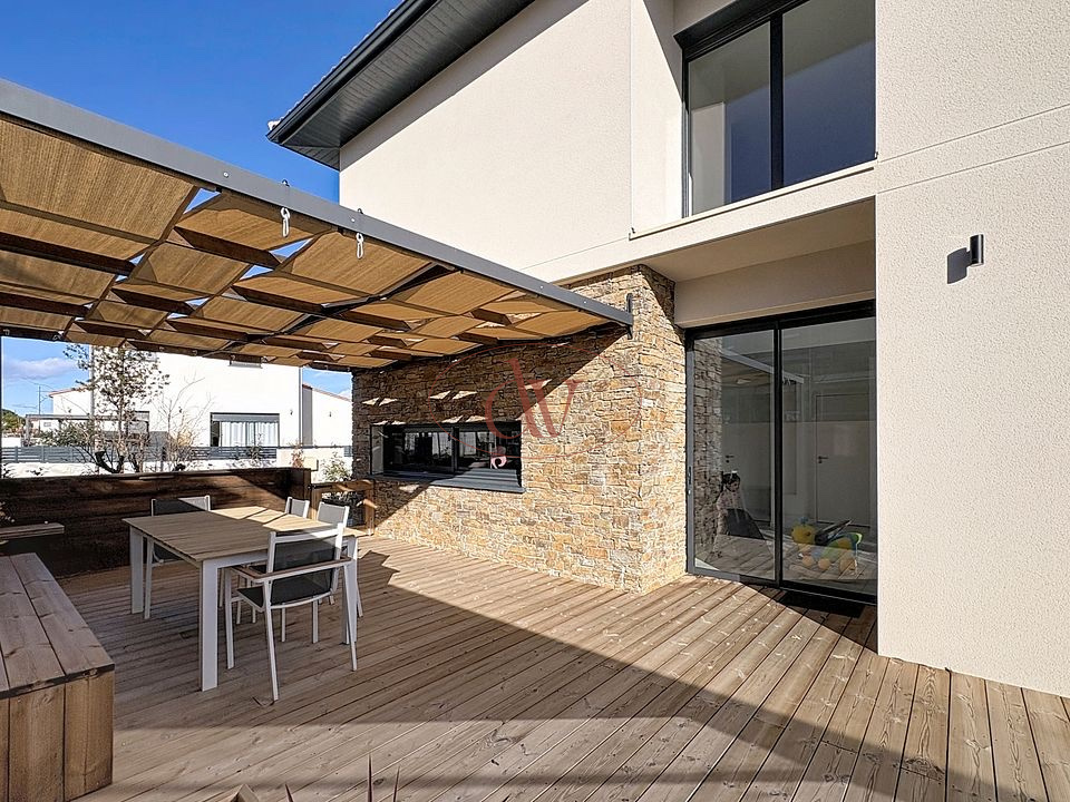 Profitez de son beau jardin , un véritable havre de paix où vous pourrez vous détendre ou organiser des repas en plein air dans sa cuisine d'été, ou encore des concours de pétanque entre amis. La terrasse, exposée plein sud, est idéale pour des moments de détente ensoleillés au bord de la piscine lagon, un véritable bijou qui transformera votre jardin en un paradis tropical.