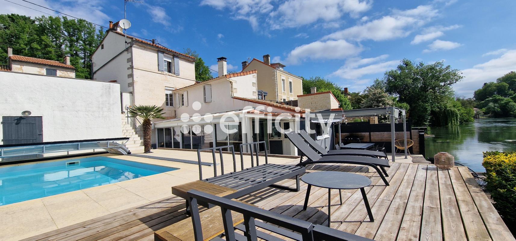 Maison atypique située en bord de la Touvre, offrant un cadre de vie unique mêlant charme, confort et nature. Développée sur trois niveaux, elle propose une configuration fonctionnelle. Au rez-de-chaussée, vous découvrirez un premier salon lumineux avec insert, une avec cuisine ouverte, idéal pour les moments de convivialité. Un second salon indépendant offre un espace supplémentaire de détente. Une buanderie vient compléter cet étage, ainsi qu'un WC indépendant. À l'étage, deux chambres accueillantes disposent chacune de leur propre salle d'eau. L'une des chambres bénéficie en complément d'un espace bureau, parfait pour le télétravail ou une activité professionnelle à domicile. Un second WC se trouve également à ce niveau. Le deuxième est dédié à la suite parentale. Spacieuse, elle comprend une chambre avec baignoire intégrée et un grand dressing, formant un véritable espace nuit confortable et élégant. À l'extérieur, la maison s'ouvre sur un environnement privilégié en bord de la Touvre. Le jardin, intègre une piscine ( 7m x 3.5m ) ainsi qu'un pool house. Cette propriété rare allie le cachet de l'atypique à des prestations de qualité, dans un cadre naturel exceptionnel.