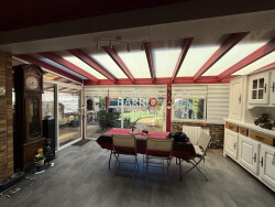 Maison mitoyenne d'un côté d'environ 97 m², située dans un secteur agréable. Séjour lumineux avec véranda exposée sud-ouest, cuisine séparée équipée. Trois chambres dont une en RDC, deux salles d'eau et deux WC. Maison bien entretenue avec climatisation, panneaux solaires et ballon thermodynamique. Jardin, terrasse, cuisine d'été, cave et stationnement complètent le bien.