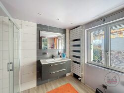 Le premier niveau se compose d'une loggia, d'une entrée, d'une cuisine équipée, d'un salon-séjour de 40 m2 avec cheminée (pièce modulable permettant l'aménagement d'un bureau ou d'une chambre), ainsi que d'une salle d'eau équipée d'une douche et d'un WC. À l'étage, la maison dispose de trois chambres, dont une avec un accès direct à une terrasse, d'un dégagement et d'un accès aux combles aménageables offrant un potentiel supplémentaire. Le sous-sol comprend un garage adapté à un véhicule de petite taille, une cave, un atelier et une buanderie donnant accès à une petite cour extérieure. À l'arrière de la maison, un joli jardin entièrement clos, à l'abri des regards, complète l'ensemble et constitue un véritable espace de détente.
