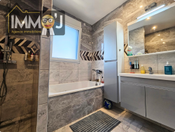 AuJourd'hui chez Immo'J, nous vous présentons une maison individuelle, quasi neuve, de plain-pied sur la commune de Xeuilley! A 15 minutes de la zone commerciale d'Houdemont, venez découvrir une maison tout Juste sortie de terre ! Qu'est ce que vous recherchez? Pour commencer une belle maison individuelle? Une maison de plain-pied? Une maison récente? (quasi-neuve). Un grand sous sol? C'est Justement tous les atouts de cette maison ! On va visiter? Après avoir passé l'entrée, Je vous présente le salon-séJour : agréable et lumineux. Sur votre gauche, la cuisine où vous pourrez miJoter vos petits plats et où vous pourrez accèder à la terrasse puis en bas au Jardin. Je vous invite à me suivre où après ce couloir, on va retrouver sur votre gauche une première Jolie chambre avec vue sur les champs. Une deuxième Juste après et la chambre la plus spacieuse sur votre droite. Face à nous, la salle de bains moderne et spacieuse avec une baignoire et une douche à l'italienne ! Comme ça pas de Jaloux, il y en aura pour tous les goûts ! Au sous-sol, Je vous précède pour vous montrer une autre chambre, soit la quatrième de la maison et un second espace séJour ou salle de Jeu pour les enfants et pour les adultes! Enfin pour finir un garage où on peut garer 2 véhicules et une Jolie buanderie avec adoucisseur. L'ensemble des prestations sont soignées et vous n'aurez plus qu'à poser vos affaires dans cette belle maison qui a tout pour plaire. Et si c'était le Jour J pour un nouveau proJet de vie?!