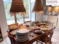 Avec une vue imprenable sur le Pic de Bugarach et sans voisins proches, cette belle propriété en pierre restaurée est actuellement gérée comme une retraite de bien-être. Elle n'a pas de voisins proches et dispose d'une grande salle de yoga/méditation lumineuse et d'une grande terrasse avec des vues exceptionnelles.
