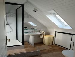 A l'étage vous trouverez une mezzanine, deux chambres, un bureau et une salle d'eau avec wc.