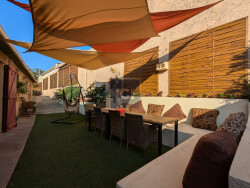 Située dans un quartier prisé et calme, cette charmante maison de 96 m² sur un terrain de 245 m² vous séduira par son cadre de vie paisible et sans vis-à-vis. Idéale pour une famille, elle se compose de 3 chambres, d'un grand séjour lumineux avec cuisine ouverte entièrement équipée, de 2 salles d'eau, d'un WC séparé et d'un espace pratique pour dressing et rangements. Profitez pleinement de l'extérieur grâce à un jardin accessible depuis le salon et l'une des chambres, parfait pour se détendre ou recevoir vos proches. Un coin repas extérieur et une piscine hors sol viennent compléter cet espace convivial. La maison bénéficie également d'un stationnement sécurisé pouvant accueillir 3 à 4 voitures derrière un portail individuel, ainsi que d'une climatisation dans le séjour pour un confort optimal tout au long de l'année. Un havre de tranquillité à proximité immédiate de toutes les commodités, prêt à accueillir ses nouveaux propriétaires !