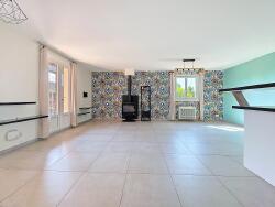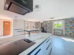 - Pièce de vie très lumineuse, refaite cette année, avec poêle à bois, climatisation et cuisine équipée : 44m²