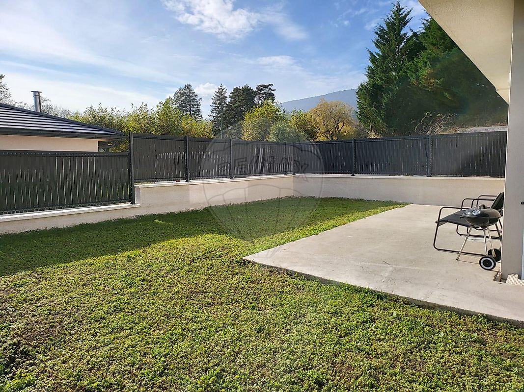 Elle se compose d'une entrée avec placard, d'une pièce de vie spacieuse de 43 m² avec salon et cuisine ouverte, donnant un accès direct à la terrasse et au jardin.
