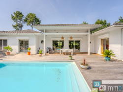 Maison d'architecte en bois - Élégance naturelle aux portes de la forêt Dans un environnement préservé, à quelques minutes seulement du coeur de Salles, cette propriété en bois de plain pied de 215 m2 habitables au sein d'un terrain paysager de 2 800 m2. Une réalisation contemporaine où architecture, nature et art de vivre se rencontrent avec équilibre. Dès les premiers pas, la maison révèle une atmosphère singulière. Les matériaux, la lumière et les volumes dialoguent avec l'extérieur. L'espace de réception, largement ouvert et structuré autour d'un plafond cathédrale, accueille salon, salle à manger et cuisine dans une continuité fluide et lumineuse. Les baies, nombreuses et généreuses, encadrent la végétation et offrent une sensation d'immersion permanente dans le paysage. Pensée pour une vie familiale harmonieuse comme pour recevoir, la maison répartit les espaces nuit dans deux univers distincts, favorisant confort et indépendance. Cinq chambres composent l'ensemble, dont plusieurs suites avec pièces d'eau, et une suite parentale aux dimensions généreuses intégrant dressing, salle de bain et ouverture sur la nature. À l'extérieur, les lieux ont été conçus comme un prolongement naturel de la maison. La vaste terrasse accueille différents espaces de vie : piscine, cuisine d'été, salon extérieur couvert à l'esprit pagode, invitant à profiter de chaque saison. Le jardin, structuré et soigneusement entretenu, se fond dans la forêt voisine, accessible directement depuis la propriété. Une dépendance indépendante d'environ 60 m2, équipée en eau et électricité, permet d'imaginer de nombreux usages : garage, atelier, espace créatif ou aménagement complémentaire. Parfaitement entretenue, fonctionnelle et sans travaux à prévoir, cette propriété offre un cadre de vie serein dans une commune dynamique, appréciée pour sa qualité de vie entre Bordeaux et le Bassin d'Arcachon.