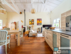 Maison d'architecte en bois - Élégance naturelle aux portes de la forêt Dans un environnement préservé, à quelques minutes seulement du coeur de Salles, cette propriété en bois de plain pied de 215 m2 habitables au sein d'un terrain paysager de 2 800 m2. Une réalisation contemporaine où architecture, nature et art de vivre se rencontrent avec équilibre. Dès les premiers pas, la maison révèle une atmosphère singulière. Les matériaux, la lumière et les volumes dialoguent avec l'extérieur. L'espace de réception, largement ouvert et structuré autour d'un plafond cathédrale, accueille salon, salle à manger et cuisine dans une continuité fluide et lumineuse. Les baies, nombreuses et généreuses, encadrent la végétation et offrent une sensation d'immersion permanente dans le paysage. Pensée pour une vie familiale harmonieuse comme pour recevoir, la maison répartit les espaces nuit dans deux univers distincts, favorisant confort et indépendance. Cinq chambres composent l'ensemble, dont plusieurs suites avec pièces d'eau, et une suite parentale aux dimensions généreuses intégrant dressing, salle de bain et ouverture sur la nature. À l'extérieur, les lieux ont été conçus comme un prolongement naturel de la maison. La vaste terrasse accueille différents espaces de vie : piscine, cuisine d'été, salon extérieur couvert à l'esprit pagode, invitant à profiter de chaque saison. Le jardin, structuré et soigneusement entretenu, se fond dans la forêt voisine, accessible directement depuis la propriété. Une dépendance indépendante d'environ 60 m2, équipée en eau et électricité, permet d'imaginer de nombreux usages : garage, atelier, espace créatif ou aménagement complémentaire. Parfaitement entretenue, fonctionnelle et sans travaux à prévoir, cette propriété offre un cadre de vie serein dans une commune dynamique, appréciée pour sa qualité de vie entre Bordeaux et le Bassin d'Arcachon.