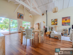 Maison d'architecte en bois - Élégance naturelle aux portes de la forêt Dans un environnement préservé, à quelques minutes seulement du coeur de Salles, cette propriété en bois de plain pied de 215 m2 habitables au sein d'un terrain paysager de 2 800 m2. Une réalisation contemporaine où architecture, nature et art de vivre se rencontrent avec équilibre. Dès les premiers pas, la maison révèle une atmosphère singulière. Les matériaux, la lumière et les volumes dialoguent avec l'extérieur. L'espace de réception, largement ouvert et structuré autour d'un plafond cathédrale, accueille salon, salle à manger et cuisine dans une continuité fluide et lumineuse. Les baies, nombreuses et généreuses, encadrent la végétation et offrent une sensation d'immersion permanente dans le paysage. Pensée pour une vie familiale harmonieuse comme pour recevoir, la maison répartit les espaces nuit dans deux univers distincts, favorisant confort et indépendance. Cinq chambres composent l'ensemble, dont plusieurs suites avec pièces d'eau, et une suite parentale aux dimensions généreuses intégrant dressing, salle de bain et ouverture sur la nature. À l'extérieur, les lieux ont été conçus comme un prolongement naturel de la maison. La vaste terrasse accueille différents espaces de vie : piscine, cuisine d'été, salon extérieur couvert à l'esprit pagode, invitant à profiter de chaque saison. Le jardin, structuré et soigneusement entretenu, se fond dans la forêt voisine, accessible directement depuis la propriété. Une dépendance indépendante d'environ 60 m2, équipée en eau et électricité, permet d'imaginer de nombreux usages : garage, atelier, espace créatif ou aménagement complémentaire. Parfaitement entretenue, fonctionnelle et sans travaux à prévoir, cette propriété offre un cadre de vie serein dans une commune dynamique, appréciée pour sa qualité de vie entre Bordeaux et le Bassin d'Arcachon.