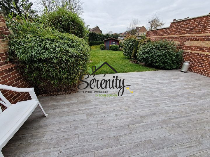 EXCLUSIVITE SERENITY IMMOBILIER. LOOS, en plein coeur de la ville et aux pieds de toutes ses commodités. Venez découvrir cette charmante maison une mitoyenneté alliant le cachet de l'ancien et la modernité. Avec une surface habitable d'environ 178 m²habitables, elle saura vous séduire par sa luminosité et son agencement fonctionnel. Offrant, au rez-de-chaussée, une entrée qui dessert un salon/séjour spacieux de 49m², agrémenté d'une cheminée à granulés ainsi d'une belle cuisine équipée avec son îlot central baignée de lumière grâce à sa superbe verrière, ouvrant sur une agréable terrasse et son jardin verdoyant sans vis à vis, pour des repas conviviaux en famille, un bureau, un cellier et un wc séparé viennent compléter ce niveau. Les étages distribuent quatre grandes chambres et une belle salle de bains avec baignoire + douche et wc. Le tout est complété par une cave avec la possibilité de reprendre les 2 places de parking en location.