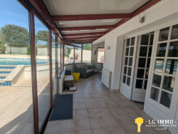 L'agence - LG IMMO - Cabinet Garéché vous propose ce coup de coeur assuré pour cette belle maison charentaise sans aucun travaux à prévoir. Au rez de chaussée on trouve un séjour avec cheminée de 61 m2, 2 cuisines séparées, une de 16 m2 et une équipée de 17 m2, une véranda avec un bureau de 38 m2, une suite parentale de 15 m2 avec sa salle de bains de 7 m2, ainsi qu'un wc indépendant. Au premier étage, se trouve 4 chambres de 11, 12, 14.50 et 24 m2, une salle d'eau avec wc de 5 m2. A l'extérieur, un joli jardin arboré avec une piscine de 10*5 et son pool house avec four à pizza, douche solaire. Toutes les huisseries sont en pvc double vitrage et le chauffage se fait par une pompe à chaleur récente. À deux pas de tous les commerces, à 15 minutes de Jonzac, cette maison où il fait bon vivre saura vous séduire par ses beaux volumes . Pour la découvrir sans tarder, contactez Sara MAILLOCHAUD au 06 22 97 42 65 ou sur sarah.maillochaudlgimmo@gmail.com Les informations sur les risques auxquels ce bien est exposé sont disponibles sur le site Géorisques : www.georisques.gouv.fr