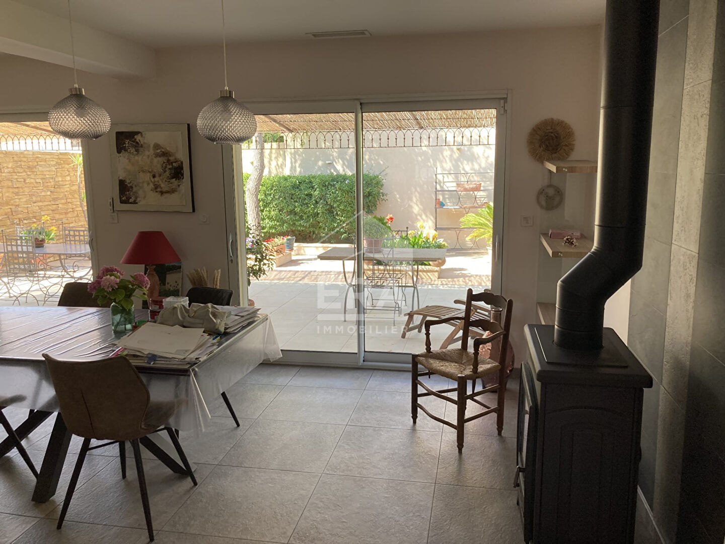 EN EXCLUSIVITÉ Entre Sorgues et Châteauneuf-du-Pape Découvrez cette villa de plain-pied d'environ 150 m2, nichée au calme sur un terrain clos et paysagé de 1000 m2 avec piscine. Elle offre un bel espace de vie lumineux d'environ 60 m2 avec cuisine ouverte et poêle à bois, trois chambres, deux dressings, une salle d'eau, un cellier et un bel espace extérieur parfaitement aménagé. Côté extérieur :- Piscine récente (construite il y a 1 an) au sel, avec vaste terrasse- Plusieurs espaces de détente- Trois garages et un atelier- Nombreux stationnements intérieurs avec possibilité de garer un camping-car- Pas de vis-à-vis Nombreuses prestations de qualité :Maison climatisée, aucun travaux à prévoir, fibre optique, double vitrage, 3 portails motorisés (y compris les garages), visiophone, alarme, adoucisseur d'eau et forage. Une maison facile à vivre, fonctionnelle, idéale pour une famille recherchant confort, modernité et sérénité à proximité immédiate de Châteauneuf-du-Pape.