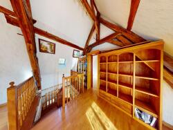 - A l'étage, un grand palier/bibliothèque, 2 chambres, une salle de bain, un bureau et un WC séparé.