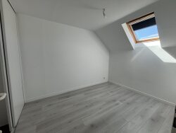 Un spacieux séjour de 20 m², baigné de lumière naturelle, avec son exposition ouest. La cuisine est indépendante, ainsi que les WC. Au 1er niveau se trouve les deux chambres dont une avec un placard. La salle de bains est fonctionnelle et à également un placard.