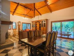 Quartier d'En Chon, Grande maison de caractère MEUBLEE sur un parc arboré de plus de 4.000 m² Au rdc, vous disposez d'une pièce de réception ouverte sur une cuisine équipée, buanderie, suite parentale avec salle de bains et WC privé, d'une chambre ou salle de jeux. A l'étage, vous profitez de 2 chambres avec accès au balcon, d' une mezzanine, d'une salle d'eau et WC. Un garage de 30 m2 complète ce bien libre au 31/10/2025 Candidature soumise à la garantie loyers impayés