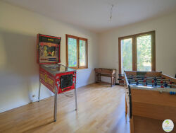 Quartier d'En Chon, Grande maison de caractère MEUBLEE sur un parc arboré de plus de 4.000 m² Au rdc, vous disposez d'une pièce de réception ouverte sur une cuisine équipée, buanderie, suite parentale avec salle de bains et WC privé, d'une chambre ou salle de jeux. A l'étage, vous profitez de 2 chambres avec accès au balcon, d' une mezzanine, d'une salle d'eau et WC. Un garage de 30 m2 complète ce bien libre au 31/10/2025 Candidature soumise à la garantie loyers impayés